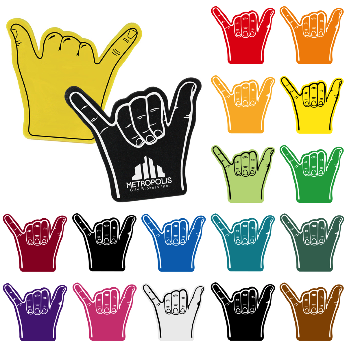 Made from high-quality, lightweight foam, the foam shaka hand is comfortable to hold and easy to wave in the crowd. It’s available in several vibrant color options to match your brand or event theme. Your logo or company name is printed using a crisp 1-color silkscreen imprint, giving you bold, high-contrast branding that stands out from a distance.